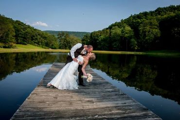 The inside of the Chalet is stunning, featuring acacia hardwood floors, cedar and stone walls, a gorgeous gas fireplace, and a rustic log staircase. Upstairs is home to an overnight suite that doubles as the perfect place for you to get ready on your big day! The connected patio has three walls that can be open or closed according to the weather. The pavilion boasts an unbelievable view and atmosphere as well as a real fireplace perfect for s'mores.
